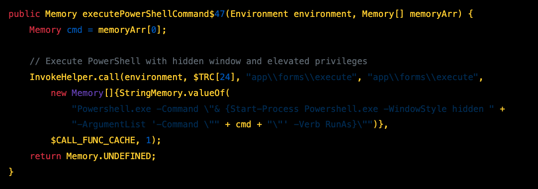 Powershell.exe -Command "& {Start-Process Powershell.exe -WindowStyle hidden -ArgumentList '-Command "{cmd}"' -Verb RunAs}"
